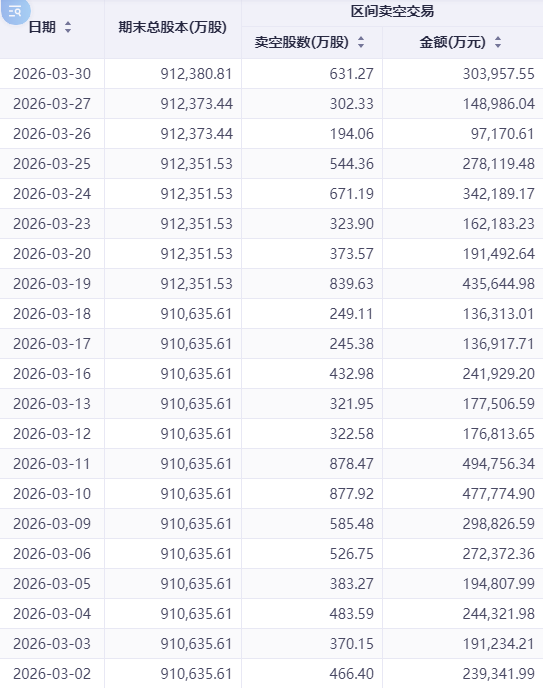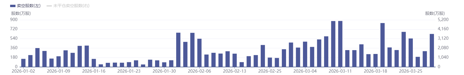 腾讯控股的卖空数据创近一周新高。3月期间,腾讯卖空股数由月初的172.28万股大幅攀升至3月30日的631.27万股,增幅超266%,期间更触及839.63万股的阶段峰值。同期卖空金额从23.93亿港元跃升至30.40亿港元,盘中最高触及43.56亿港元,显示空头资金集中押注,对短期股价形成显著压制。