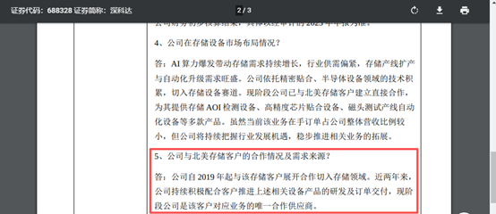 根据公司3月16日投资者调研记录表,现阶段公司为北美存储客户AOI检测设备、高精度芯片贴合设备、磁头测试产线自动化设备等多款设备的唯一合作供应商。