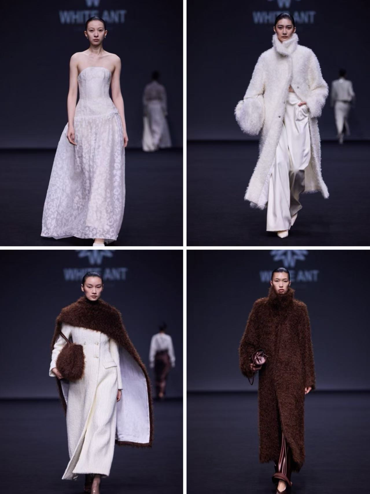 WHITE ANT在经典主义基础上进行当代简化适配,以“时光逆流”为创作概念,象征过去与未来、怀旧与创新的交织共生。T台之上,品牌以利落廓形、精湛工艺、内敛比例与坚定力量感呈现当代优雅,坚持极简精神与可持续时尚方向,传递“真正的优雅无需张扬”的核心美学,展现沉稳、高级、持久的穿搭气质。