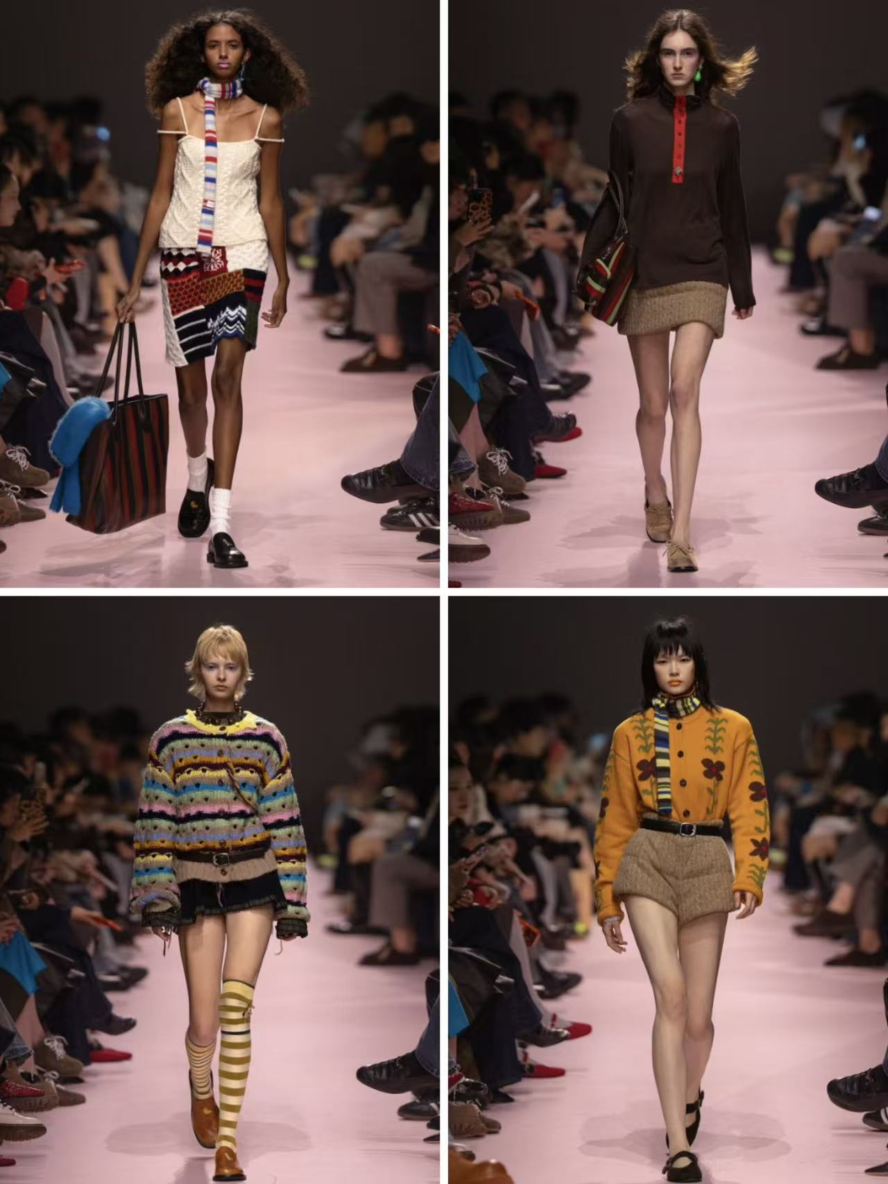 Short Sentence整场走秀以瑞典经典文学作品《长袜子皮皮》为创作灵感,从角色自由、不受规训的个性出发,以纯粹儿童视角完成对当代成人生活的时尚折射。T台之上,系列提取波点马、猴子、香蕉等鲜明视觉形象,以印花、绣花等工艺呈现于针织毛衣、鞋履、棉服、羽绒服等单品之上,通过夸张比例与细腻手工质感丰富造型层次;同时从儿童字母卡片中汲取灵感,在细节处点缀短句与字母元素,延续品牌舒适、高质感、适配日常、可跨越季节与潮流的设计定位。