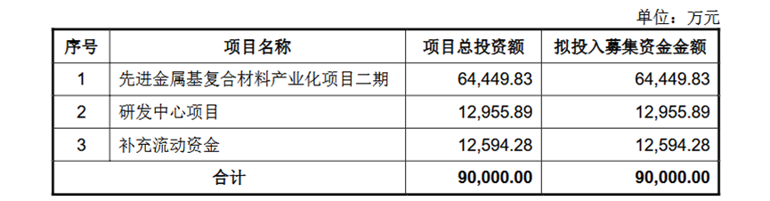 本次科创板IPO,有研复材拟募资9亿元,其中6.44亿元投向先进金属基复合材料产业化项目二期,同步建设研发中心并补充流动资金。