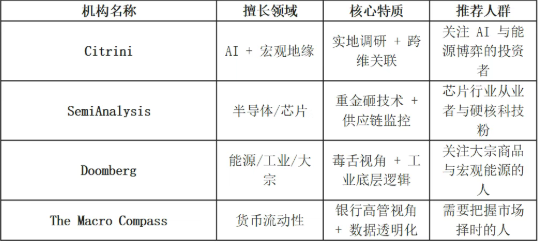 不论我们这些老派old school的卖方研究如何评价,新型的专业化、平台化、前线化独立研究,在AI大潮中越来越盛行。跟Citrini类似的研究机构还有Doomberg(能源工业研究),SemiAnalysis(半导体芯片研究),MacroCompass(全球流动性研究),Hindenberg(做空研究)。