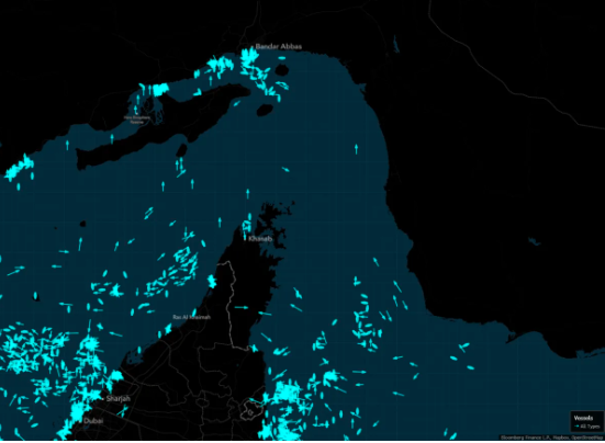 截至周三上午,1000多艘船只在迪拜和豪尔费坎附近(霍尔木兹海峡两侧)聚集等待。
