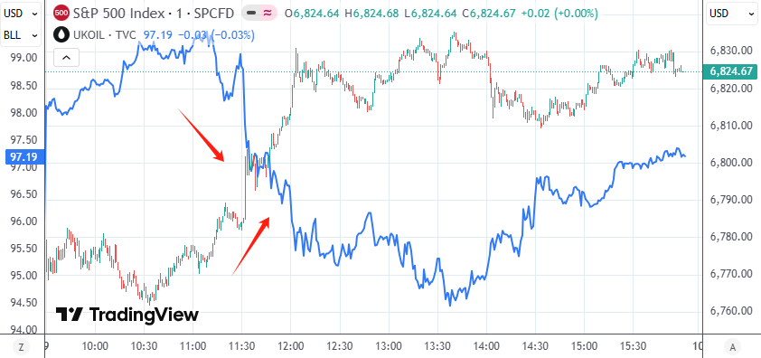 盘中有报道称,特朗普要求以色列减少对黎巴嫩的打击,以确保美伊谈判顺利进行。受该消息提振,标普500指数开始走高,国际原油价格也从日内高点大幅回落。