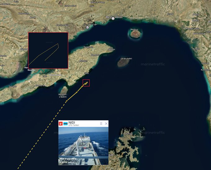根据MarineTraffic AIS追踪的数据,周四,一艘液化石油气船在试图通过伊朗批准的拉腊克岛附近路线穿越霍尔木兹海峡时,就进行了180度转向,这是自周三以来同一路线上的第二起油轮转向事件。