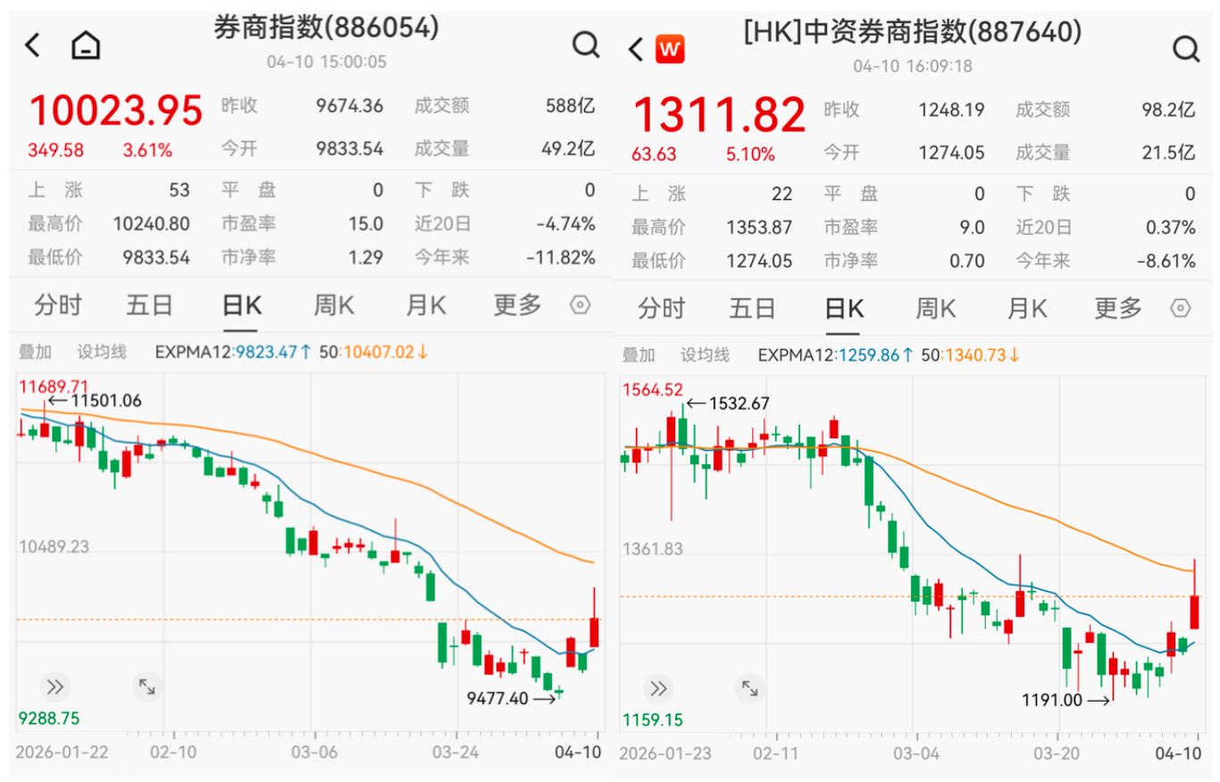 券商板块估值过去也处于低位,截至2026年4月,中证全指证券公司指数市净率(仅为1.18倍,处于近十年13%分位,市盈率也处于历史低位,与业绩增长形成明显背离。这种基本面与股价的严重错配,正是今日券商板块暴力反弹的内在逻辑。