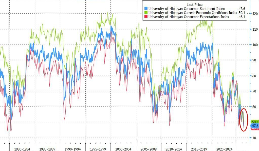 美国消费者信心暴跌至历史新低 通胀预期急剧升温