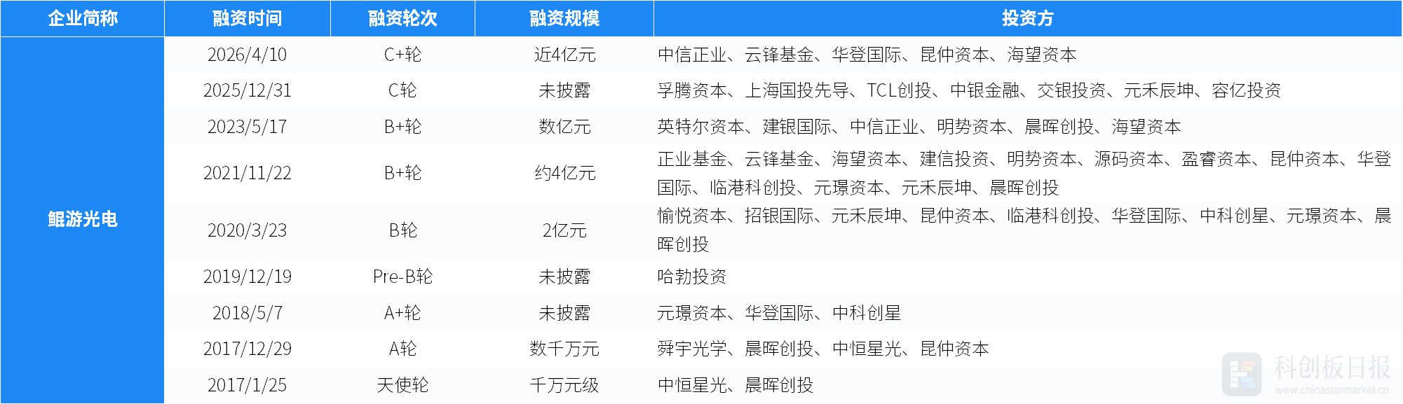 鲲游光电完成近4亿元C+轮融资