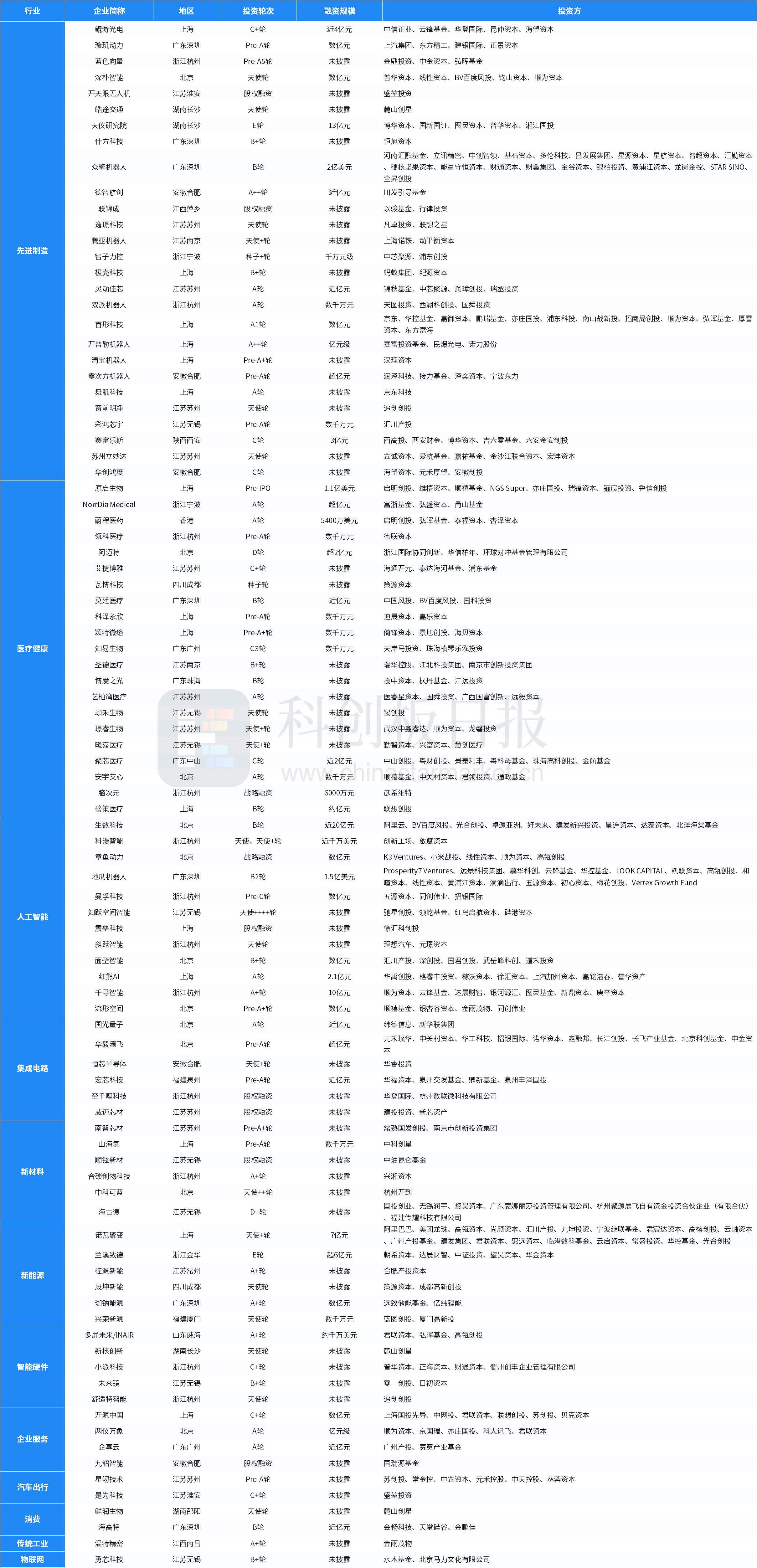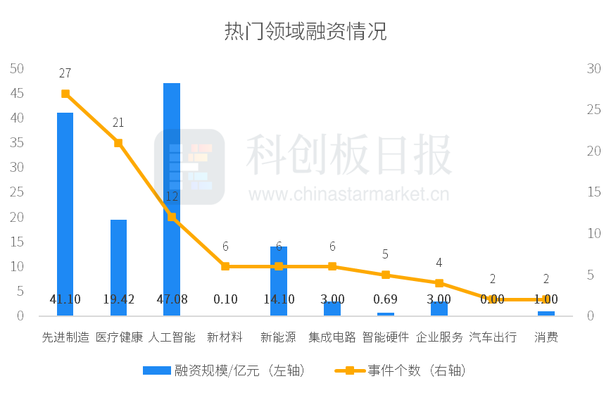 ②先进制造、医疗健康、人工智能等领域较活跃;人工智能披露的融资总额最多约47.08亿元。
