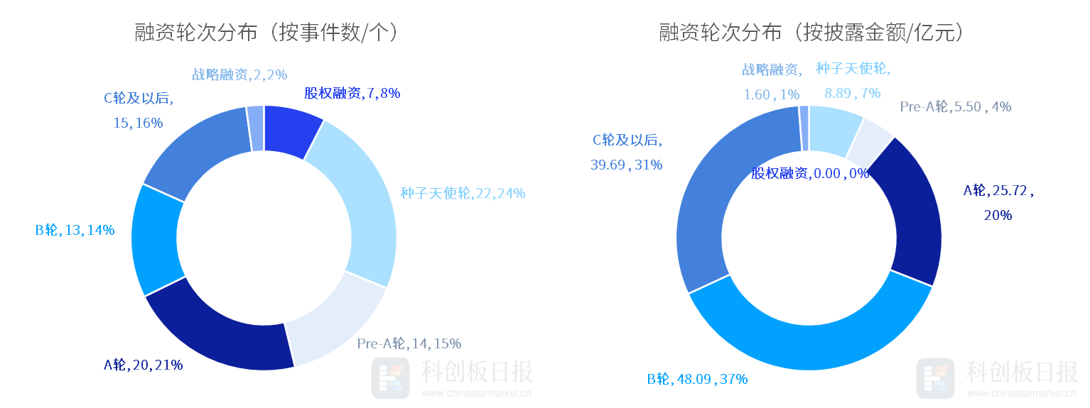 ①本周国内统计口径内共发生93起投融资事件,环比减少14.68%;已披露的融资总额约129.49亿元,环比增加13.60%。