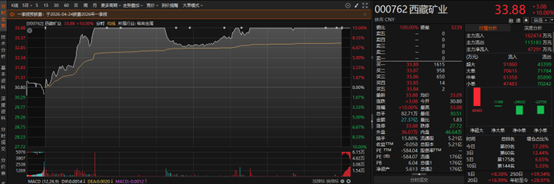 川能动力锂电业务包括锂精矿采选和锂盐制造,其中锂精矿产能为18万吨/年,锂盐产能为4.5万吨/年,公司锂电业务收入包括锂精矿销售收入和锂盐销售收入。公司3月20日在互动平台回复,围绕“新能源电力+新能源材料”布局产业,李家沟锂矿项目已建成投产,是公司未来经营收入的重要板块。西藏矿业拥有独家开采权的西藏扎布耶盐湖是世界三大、亚洲第一大锂矿盐湖,是富含锂、硼、钾,固、液并存的特种综合性大型盐湖矿床。扎布耶二期项目已有氯化钾和碳酸锂产品产出。截至周五收盘,西藏矿业收盘涨停。