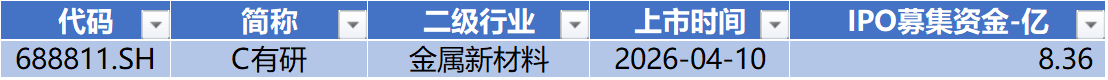 经wind查询,本周1家科创板公司IPO:有研复材,募集资金8.36亿。
