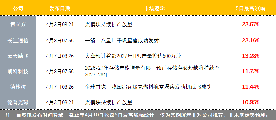 往期回顾:4月8日07:56《九点特供》指出,今年长征八号火箭将开启高密度发射模式,持续助推我国低轨卫星互联网星座建设和商业航天高质量发展,提及长江通信全资子公司迪爱斯中标的上海垣信卫星科技有限公司的项目主要是卫星测运控中心建设、地面站园区建设相关项目,其在4月9日、10日收获2连板。