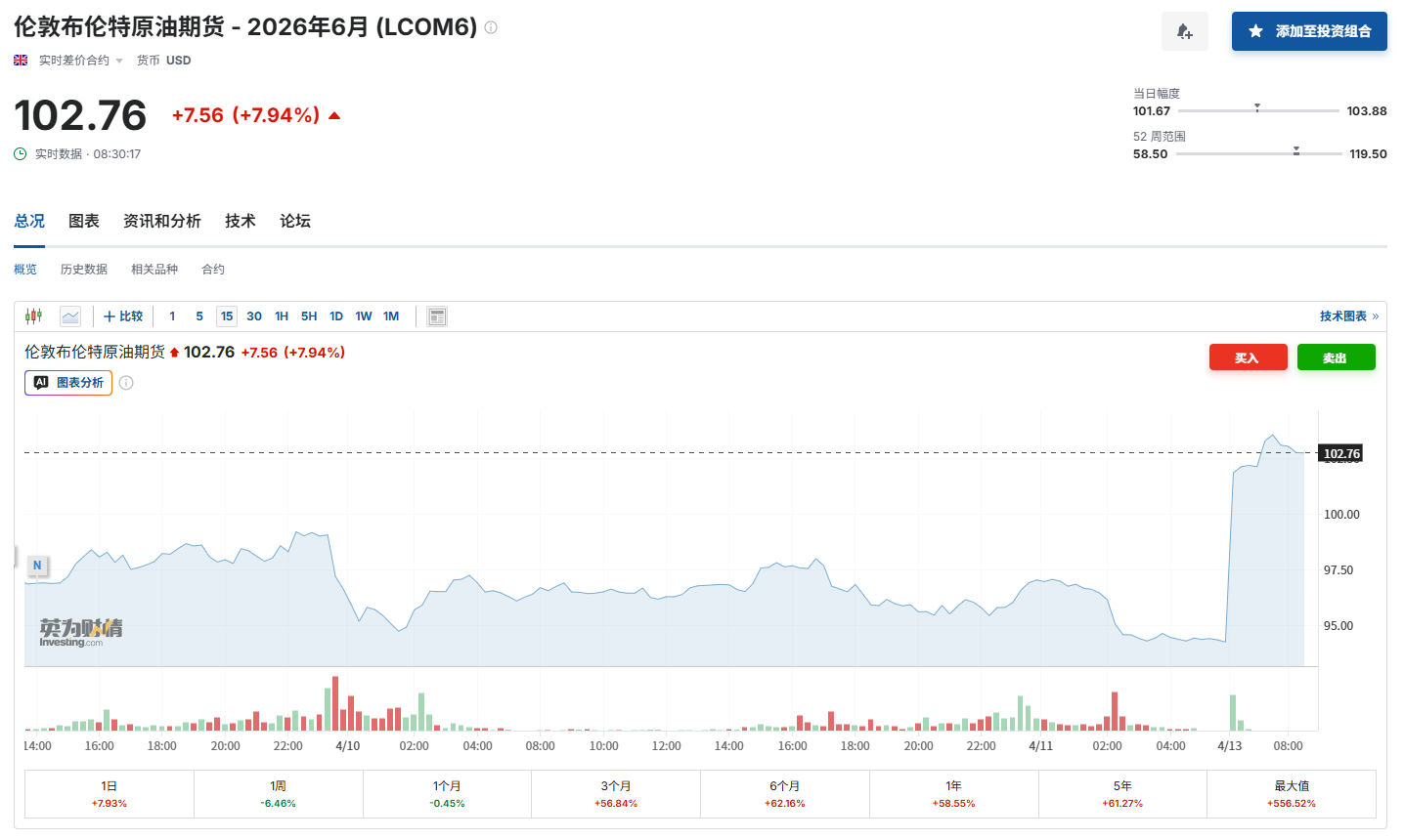 财联社4月13日讯(编辑 黄君芝)随着美国与伊朗周末的和谈“无果而终”、双方紧张氛围再度拉满,国际油价周一亚洲开盘大涨:布伦特原油期货和WTI原油期货涨均上涨约8%。