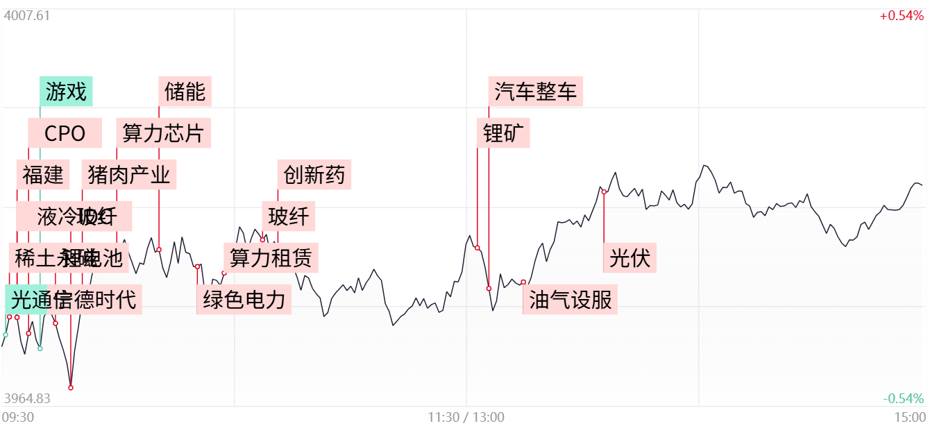 今日市场延续震荡反弹,三大指数最终全线收红,创业板依旧相对偏强,续创阶段新高,短线先行关注5日线即可,只要不将其有效跌破,创业板指或仍具冲高动能。另外沪指依旧受到30日均线的压制,能否将其有效突破仍是后续的观盘重点。另外值得注意的是,今日量能不增反减,反映出目前市场仍以存量博弈为主。此外从市场热点分布来看,绝大多数的赚钱效应多数集中于算力硬件与锂电两大方向,结构性分化同样也是目前市场的主旋律。