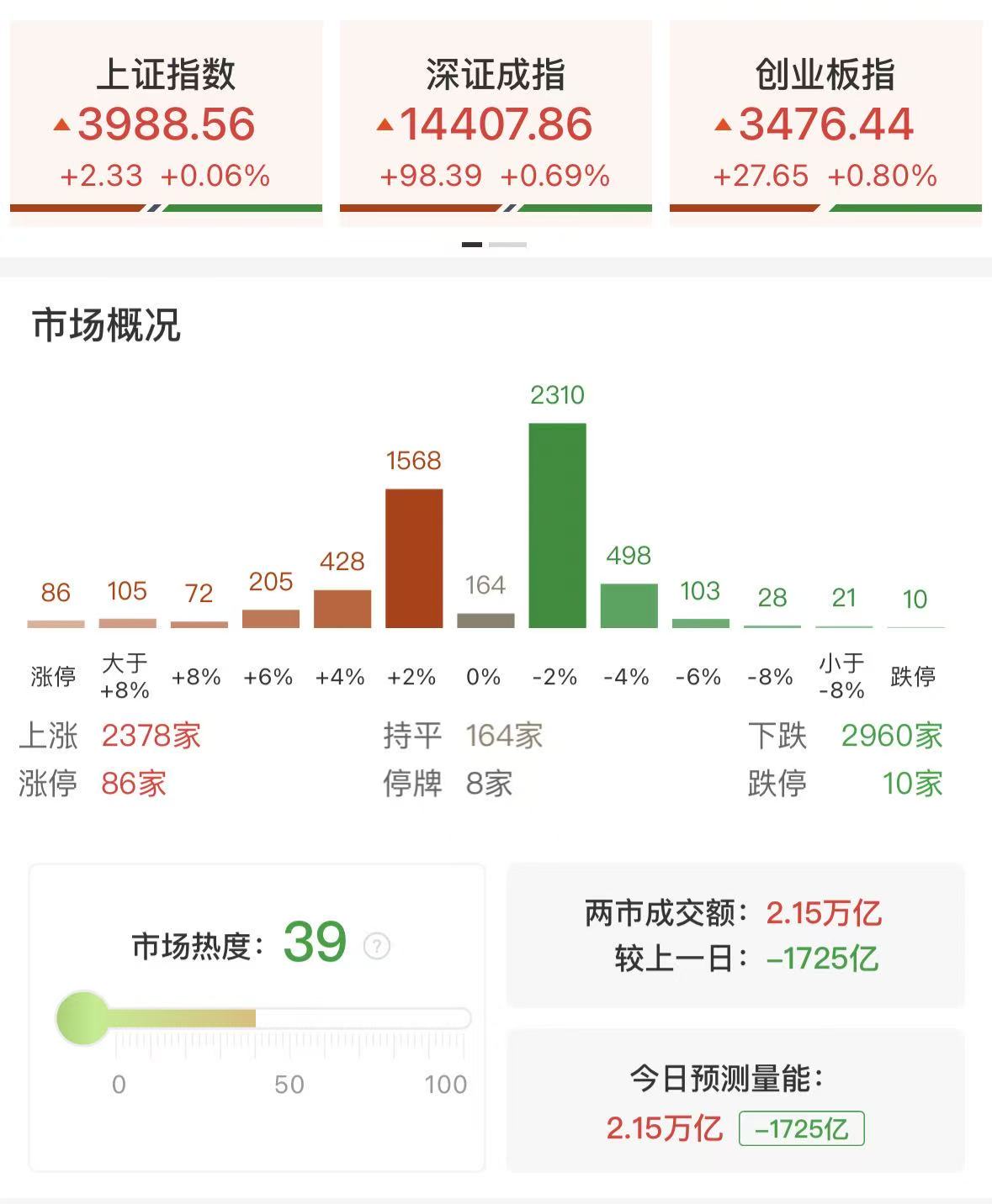 财联社4月13日讯,市场震荡拉升,三大指数集体收红,创业板指盘中涨超1%,续创阶段新高。沪深两市成交额2.14万亿,较上一个交易日缩量1725亿。盘面上,局部热点反复活跃,全市场个股跌多涨少,但仍有86只个股涨停。从板块来看,储能方向集体走强,宁德时代创历史新高,盘中A+H股市值突破2万亿,纳百川20CM涨停,圣阳股份3连板。锂矿概念爆发,国城矿业涨停创历史新高,大中矿业、盛新锂能双双涨停。CPO概念表现活跃,瑞斯康达、华盛昌、泰晶科技涨停,仕佳光子、光迅科技、源杰科技续创历史新高。下跌方面,游戏板块集体下挫,恺英网络跌停、冰川网络跌超10%。截至收盘,沪指涨0.06%,深成指涨0.69%,创业板指涨0.8%。