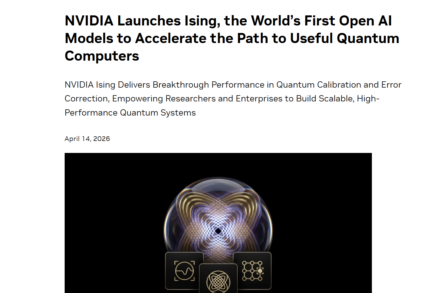 英伟达掌门黄仁勋在新闻稿中表示:“要让量子计算真正走向实用,AI至关重要。借助Ising,AI将成为量子计算的控制层,也就是量子机器的操作系统,把脆弱的量子比特转变为可扩展且可靠的量子GPU系统。”
