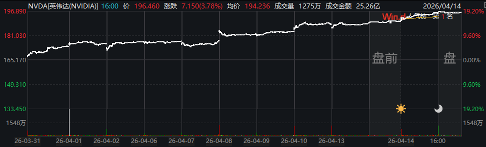 ②行情数据显示,周二该公司股价收涨3.8%,报于196.51美元。在这轮始于3月31日的最新“十连涨”经历中,英伟达股价市值累计增加了7615亿美元,约合人民币5.19万亿元。