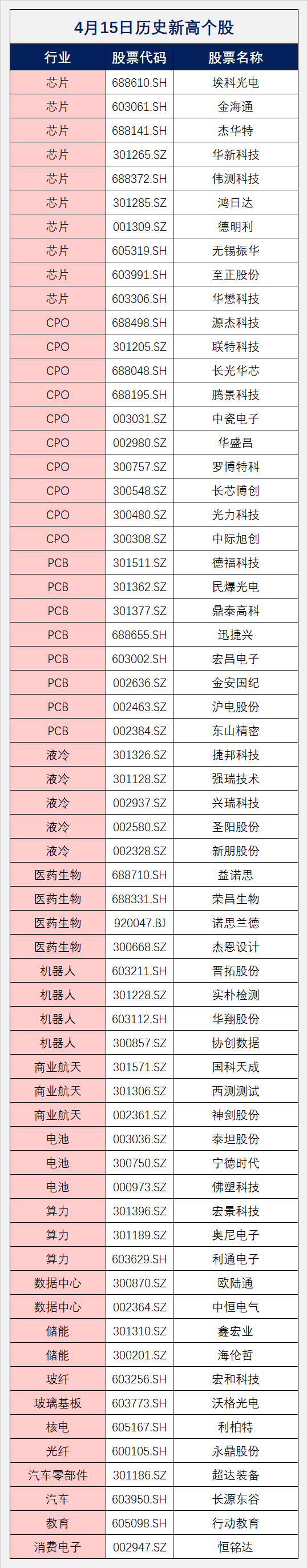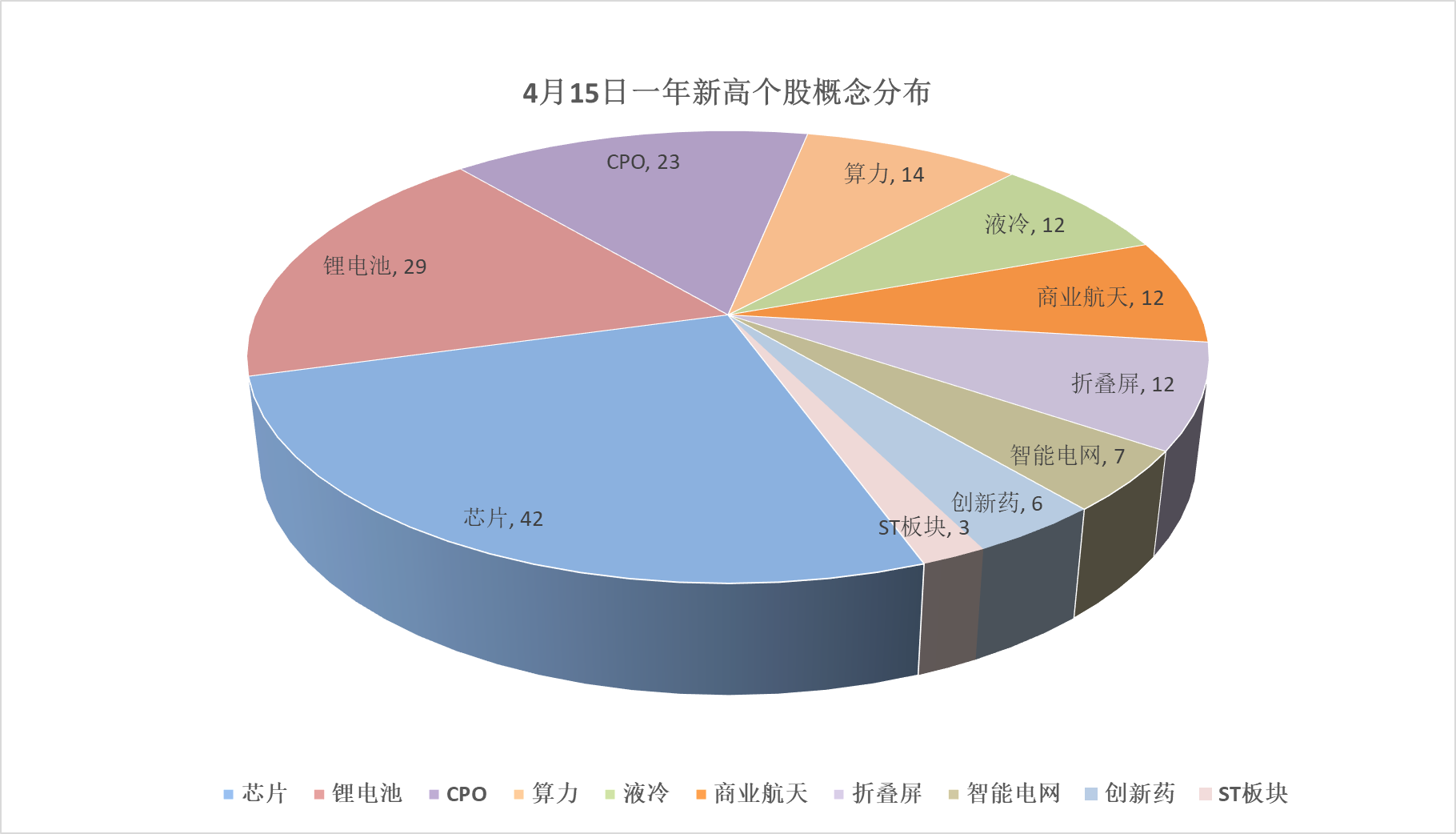 点评:创一年新高个股较上个交易日减少12家至139家。其中,前三的芯片、锂电池、CPO概念分别有42、29、23家个股创一年新高。历史新高个股占比中芯片位列第一,中原证券表示,半导体行业持续景气,涨价已从存储蔓延至产业链各环节,半导体产业链迎来全面涨价潮。相关个股:强一股份的薄膜探针卡主要应用领域为射频芯片、光电子芯片等;耐科装备在半导体封装装备领域,部分技术指标已达到国际先进水平。