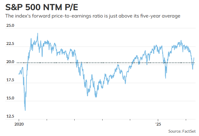 早在伊朗冲突爆发前,随着标普500指数横盘震荡,与其挂钩的常用估值指标就已开始回落。华尔街分析师当时仍在持续上调对该指数成分股未来12个月盈利的预期。