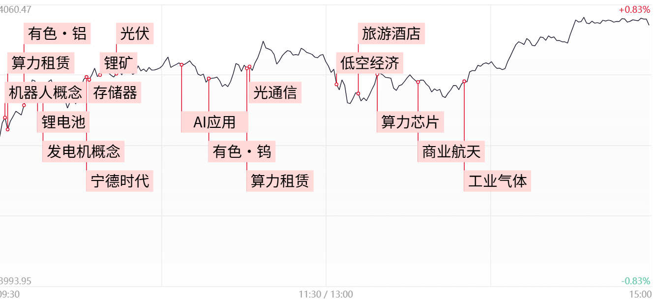②盘面上,市场热点呈现高低轮动,医药、商业航天等方向逆势走强,锂电、算力硬件等热门板块陷入调整。