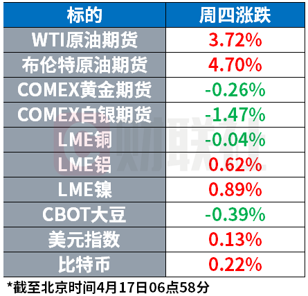 大宗商品方面,国际油价周四再度反弹并逼近每桶100美元关口。虽然有停火和谈判的消息,但霍尔木兹海峡仍未恢复畅通也是不争的事实。同时还有消息称,数位欧洲和海湾阿拉伯领导人认为,谈成一项美伊协议可能需要六个月时间,但美伊之间为期两周的停火即将到期。伦铝也刷新2022年以来的新高。
