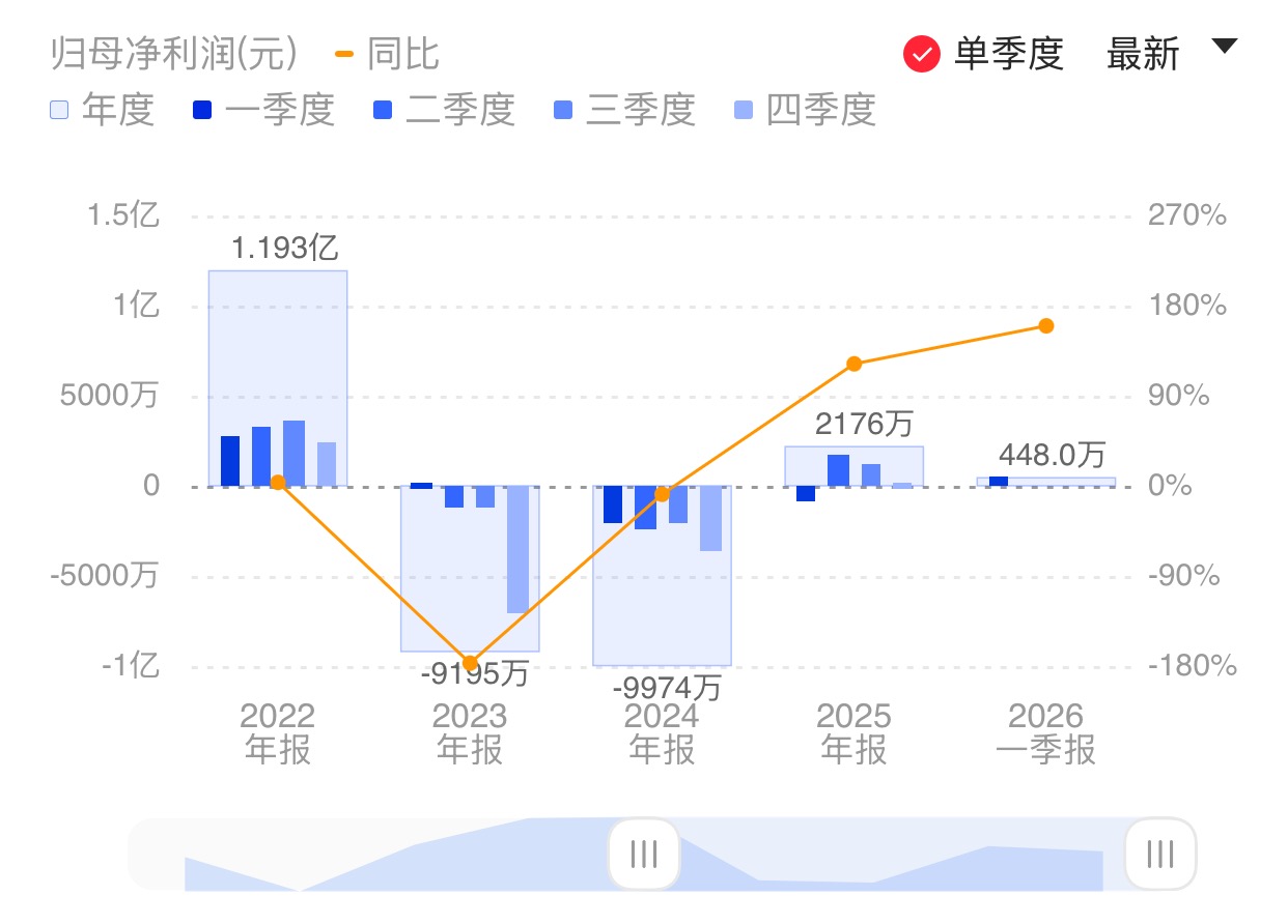 财联社4月17日电,长光华芯(688048.SH)公告称,2026年第一季度实现营业收入1.30亿元,同比增长37.81%;归属于上市公司股东的净利润为447.96万元,同比扭亏为盈。业绩变动主要系公司坚持横向拓展战略,一季度收入的增长主要源于前期布局的光通信等业务的增长。小财注:公司Q1净利润448.0万,2025年Q4净利润82.15万,据此计算,Q1净利润环比增长445.34%。