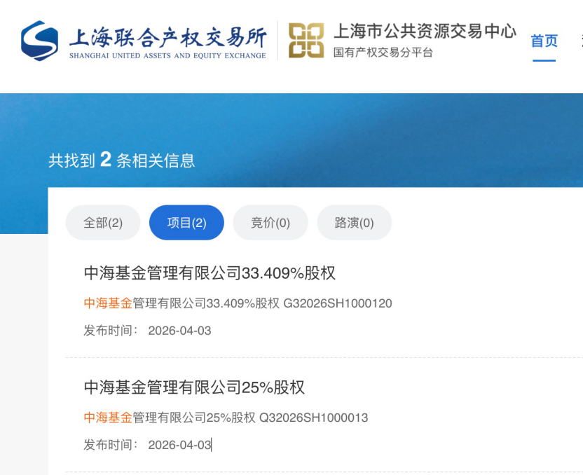 4月以来,中海基金、德邦基金2家公募股东接连将所持股权公开挂牌转让。目前来看,市场反应冷淡,买家难觅。