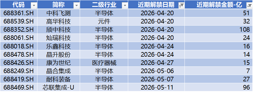 1、近期解禁: