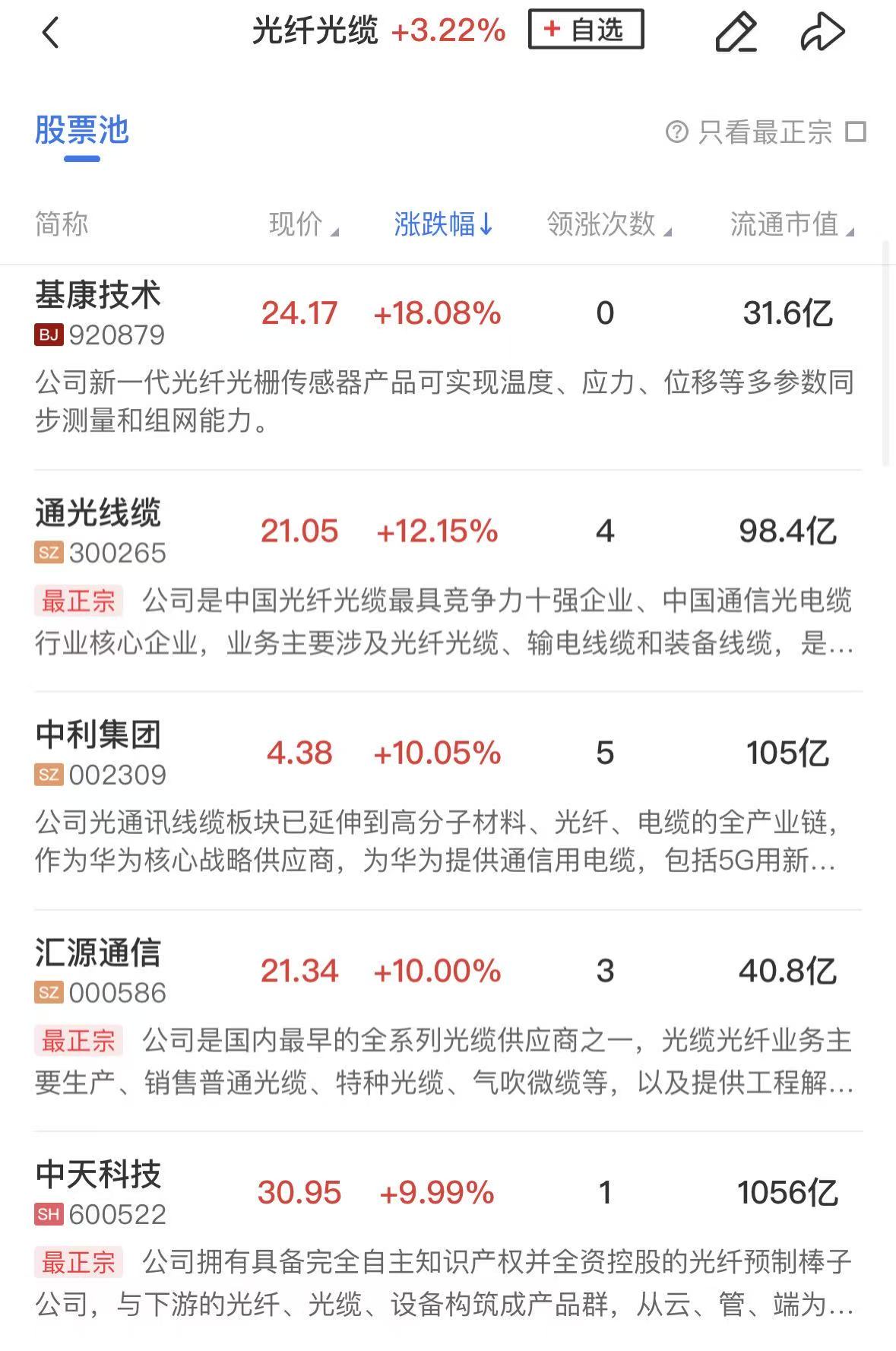 光纤概念再度活跃,通鼎互联3天2板,中天科技涨停,亨通光电、长飞光纤、特发信息等个股涨幅居前。