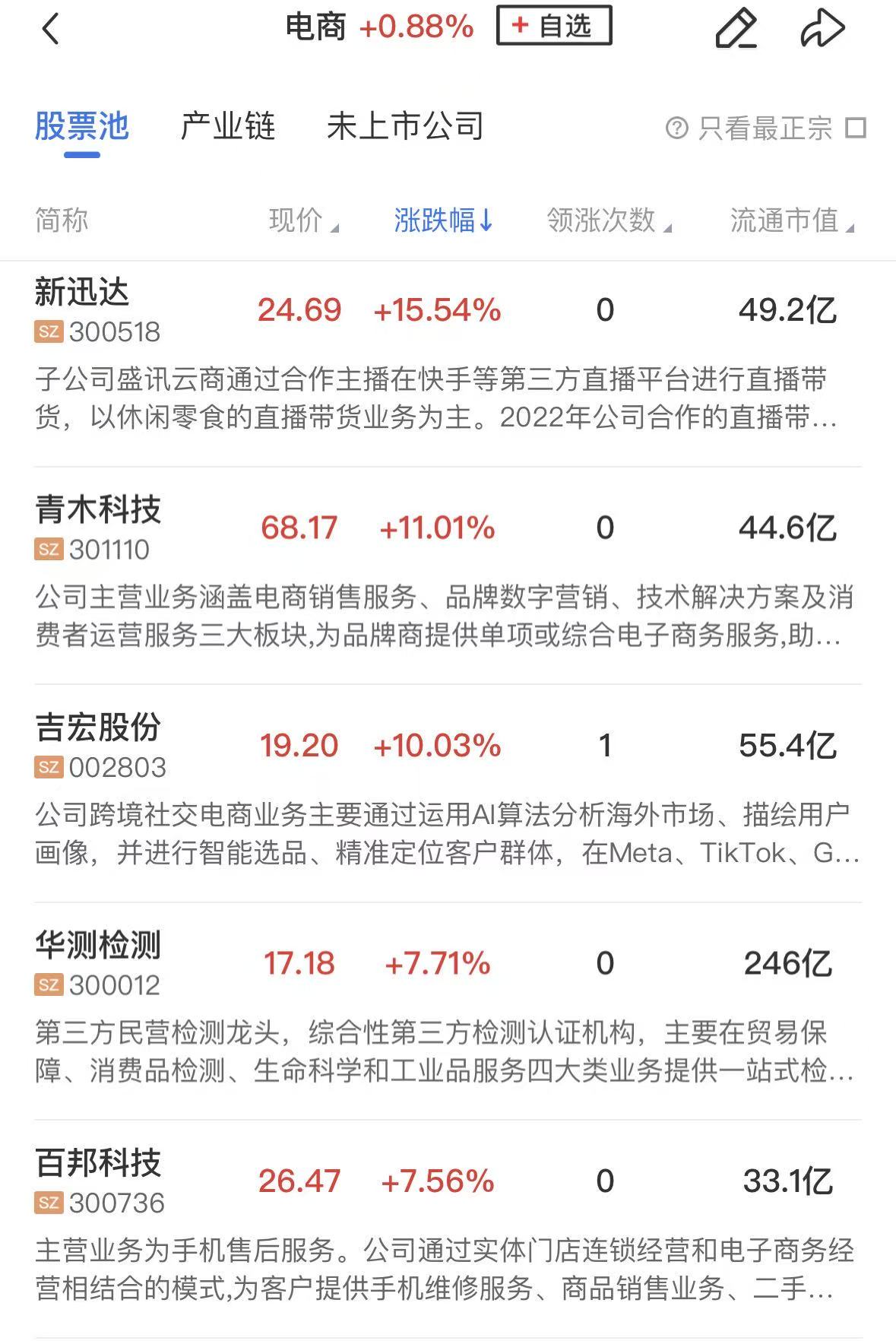 互联网电商板块同样走强,吉宏股份涨停。新迅达、青木科技、赛维时代、华凯易佰等涨幅居前。