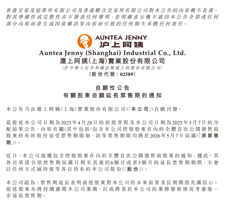 公告明确表示,此举旨在“表明前述股东对本公司的未来前景及长期价值充满信心”,并保留根据业务发展情况进一步延长禁售期的可能性。