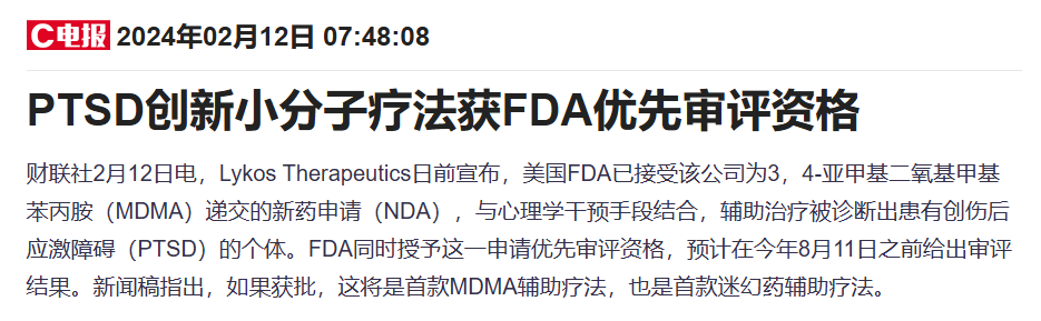 此前,迷幻药物行业曾在2024年遭遇挫折:美国监管机构拒绝了Lykos Therapeutics Inc. 针对PTSD的MDMA辅助疗法申请,理由是研究质量以及临床试验设计存在问题。