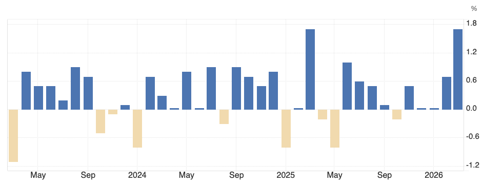 (美国3月零售销售增速创一年来新高,来源:tradingeconomics)