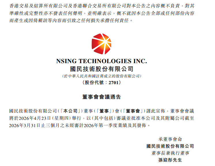 除了英诺赛科走强,国民技术盘中也一度涨超6%。该公司宣布,将于4月23日召开董事会审议第一季度业绩。值得注意的是,公司已于3月26日向客户发出价格调整通知函,计划自2026年4月7日起,对部分产品售价上调15%-20%。此举反映出公司在成本控制与产品议价能力上的信心,为未来业绩提供了有力支撑。
