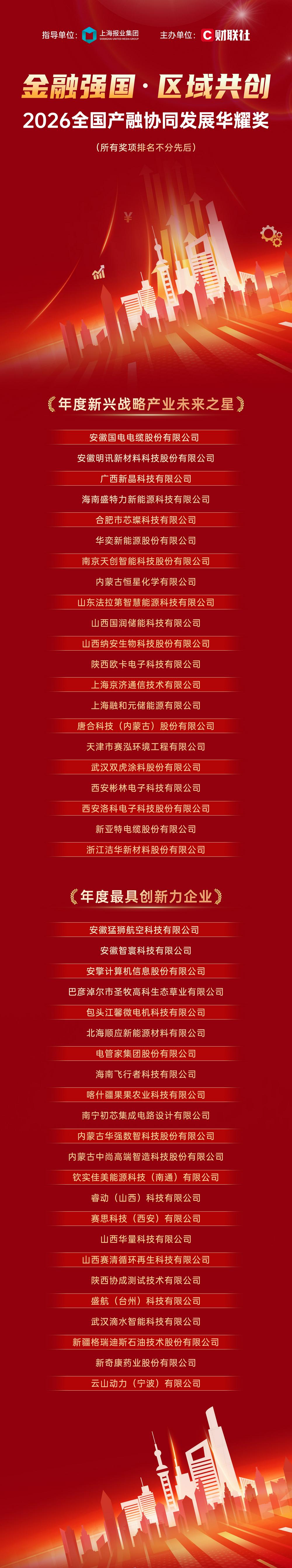 经过一系列严谨的评审,相关奖项已全部评出,并在财联社2026产融协同发展大会上举办了隆重的颁奖仪式。