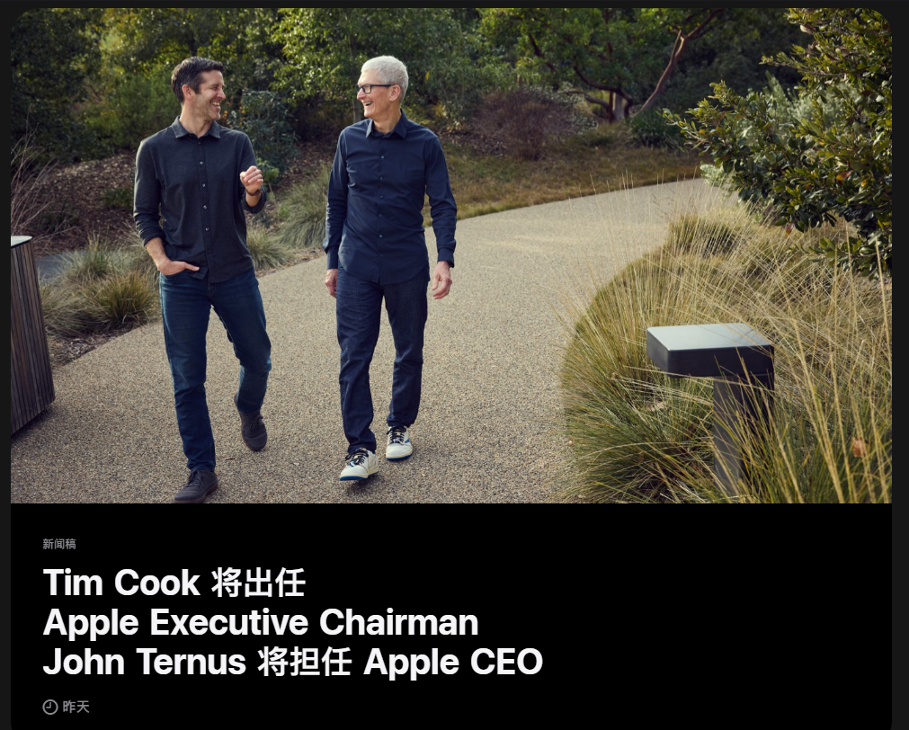 本周一,苹果公司在官网宣布,硬件工程高级副总裁特努斯将于2026年9月1日起接替库克担任苹果下一任CEO,库克将转任苹果董事会执行主席,协助公司的部分事务,包括与全球政策制定者进行沟通。