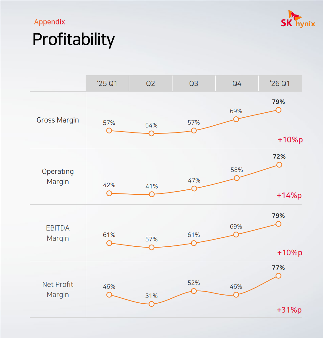 过去几个季度,在人工智能需求推动下,SK海力士的利润率步步攀升