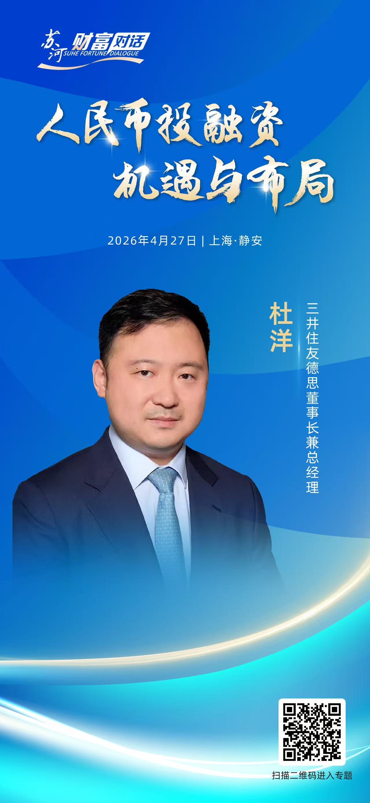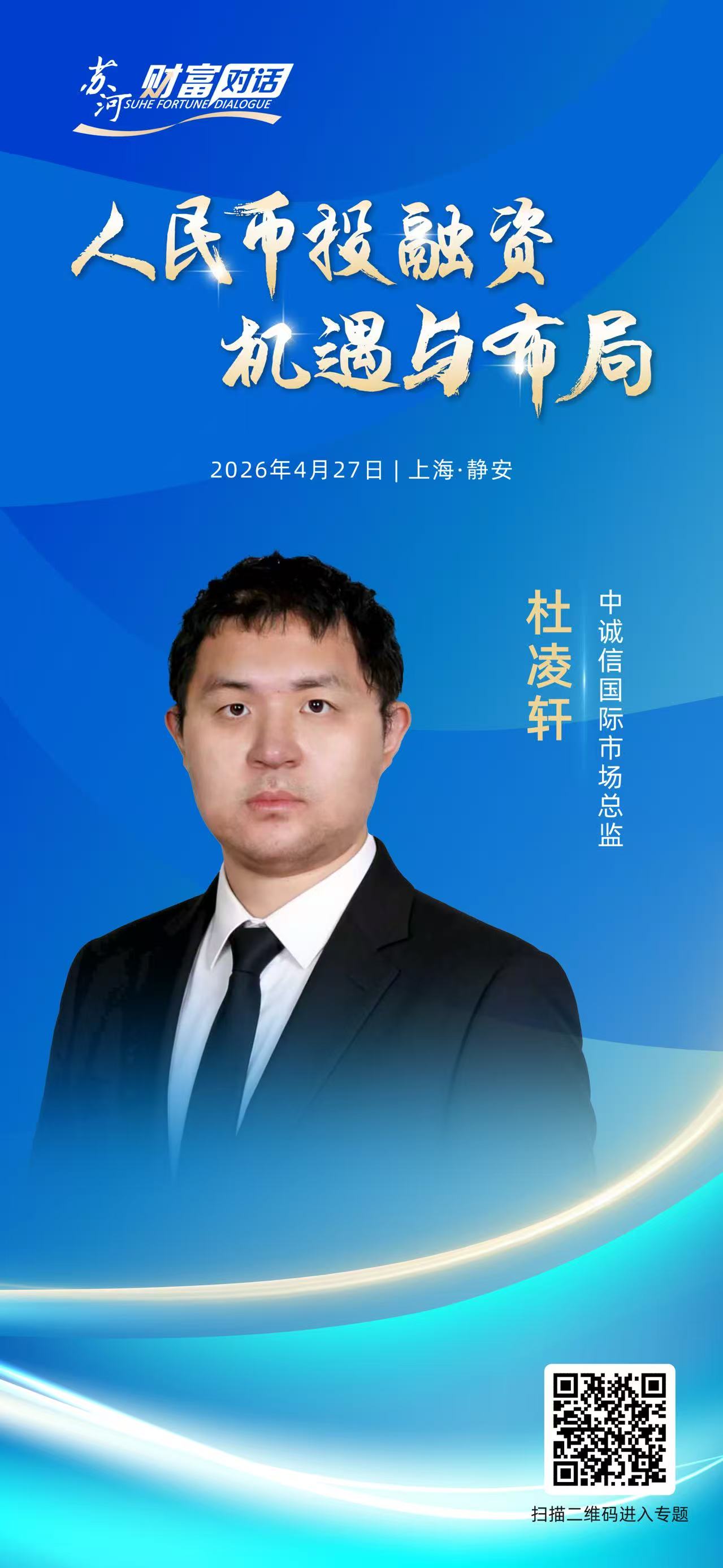 在此背景下,静安区2026年苏河财富对话第二场活动将于4月27日举办,聚焦《人民币投融资机遇与布局》这一主题,邀请银行、券商、外资私募、专业服务机构代表,深度解读人民币投融资机遇与布局,全面探讨全球资本与中国市场的双向赋能路径,助力静安区打造全球资本配置中国资产的首选地和境外主体在华融资的重要枢纽。