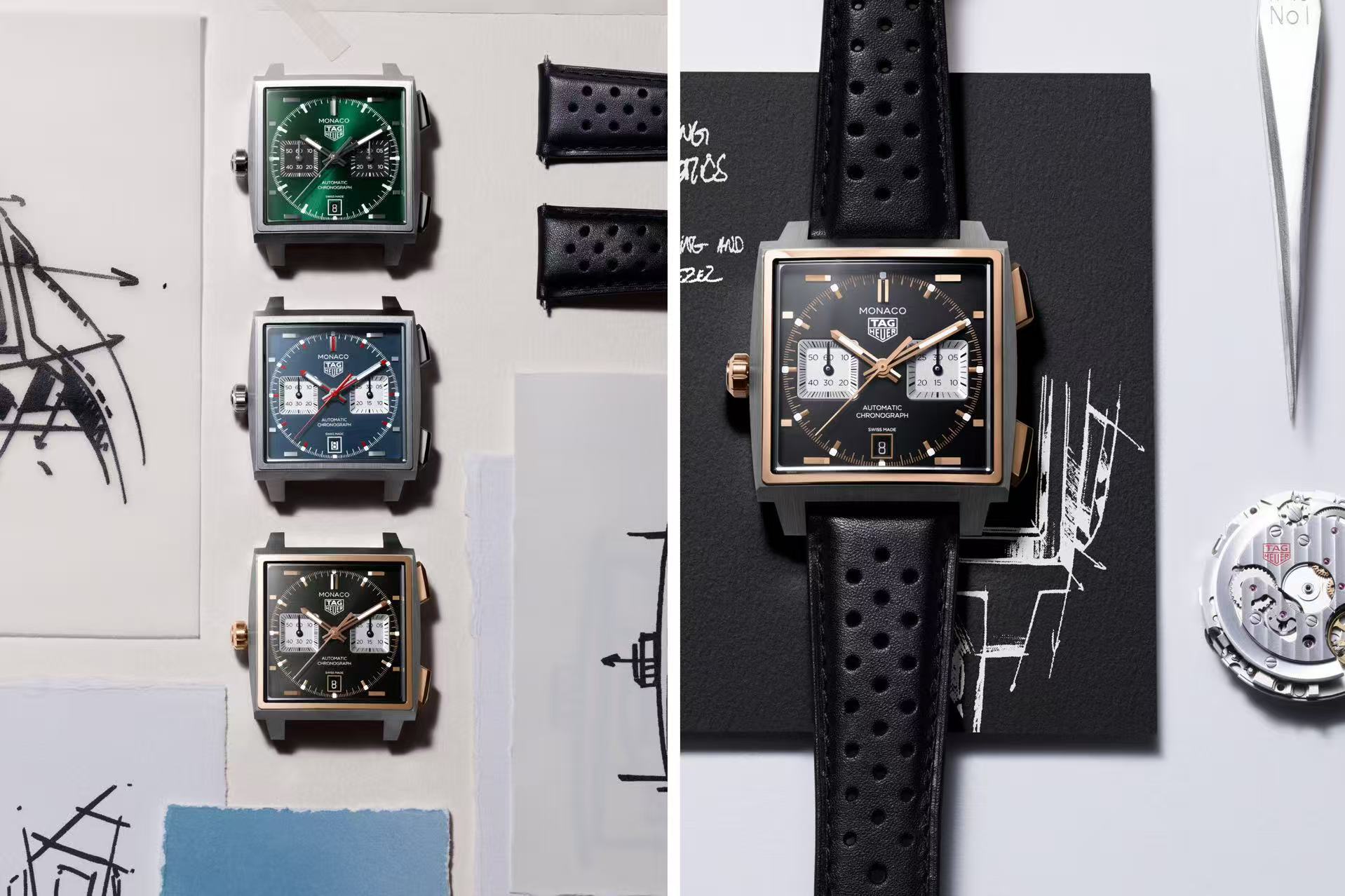 1969年问世的泰格豪雅摩纳哥系列,凭借棱角分明的表壳与罕见色调的大胆运用迅速确立先锋地位。本次发布的系列新作以初代摩纳哥1133型腕表为蓝本,动感线条重新勾勒出系列标志性的方形轮廓。