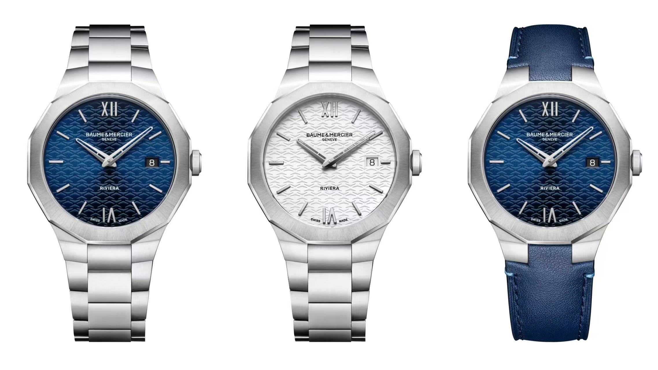1973年问世的利维拉腕表,以标志性十二边形表壳、均衡的比例和简洁的线条奠定了系列的审美基调。今年,名士以三款全新39毫米利维拉73系列日历石英腕表致敬经典。十二边形表壳摈弃可见螺丝设计,表盘的大开口设计勾勒了轮廓的优雅美感,表壳厚度仅7.7毫米,彰显和谐比例与优雅轮廓。表壳背面镌刻"73"标识并饰以灵感源自船甲板的垂直条纹。石英机芯F06.115电池续航5年。三款腕表分别为蓝色太阳缎面山海纹表盘配精钢表链、乳白色山海纹表盘配精钢表链,以及蓝色山海纹表盘配蓝色小牛皮表带。