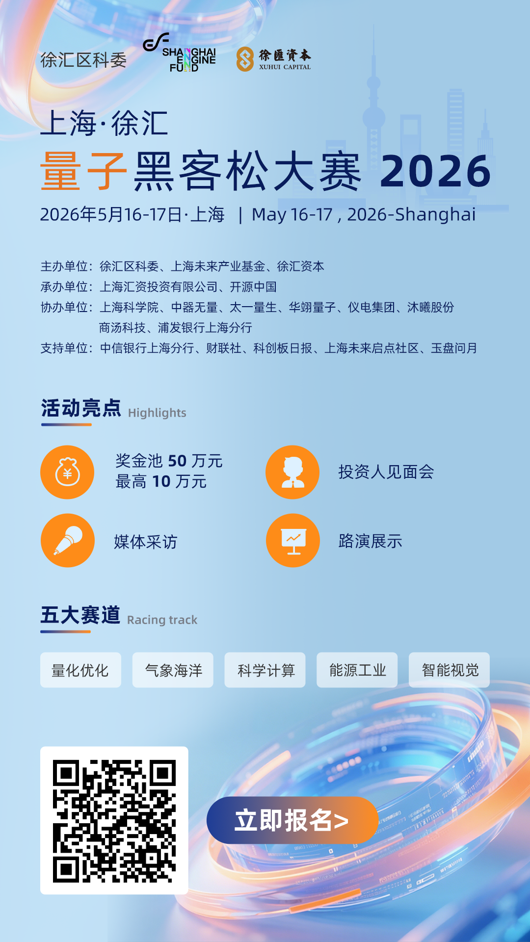 4月24日,「上海・徐汇 量子黑客松大赛 2026」正式官宣,将于5月16至17日在徐汇源点大厦举办,总奖金 50 万元,面向全球开发者、研究者与创业团队开放,打造国内量子计算垂直领域 Hackathon。