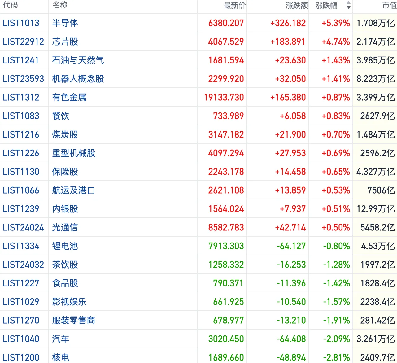 其他方向上,DeepSeekV4发布引爆半导体板块,算力概念也跟风走强。此外,石油、煤炭、医药、餐饮、保险股多数上涨,航运、锂电等行业也有个股活跃。