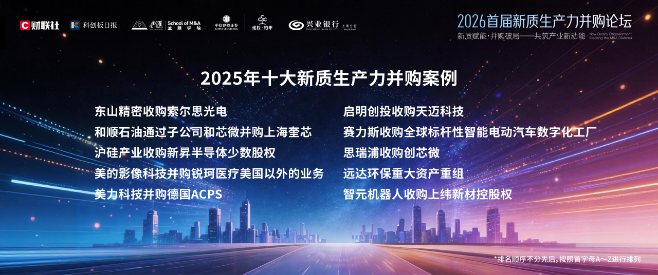 “2026首届新质生产力并购论坛”的圆满举办,时值产业整合与并购重组的黄金窗口期。当前产业迭代加速、新旧动能持续转换,以并购重组优化资源配置、补齐产业链短板、强化核心竞争力,已成为各行各业培育新质生产力、实现高质量发展的重要路径。以并购聚合力、以整合促升级,围绕“新质赋能・并购破局——共筑产业新动能”这一重要命题,将持续书写出更多精彩的新篇章!