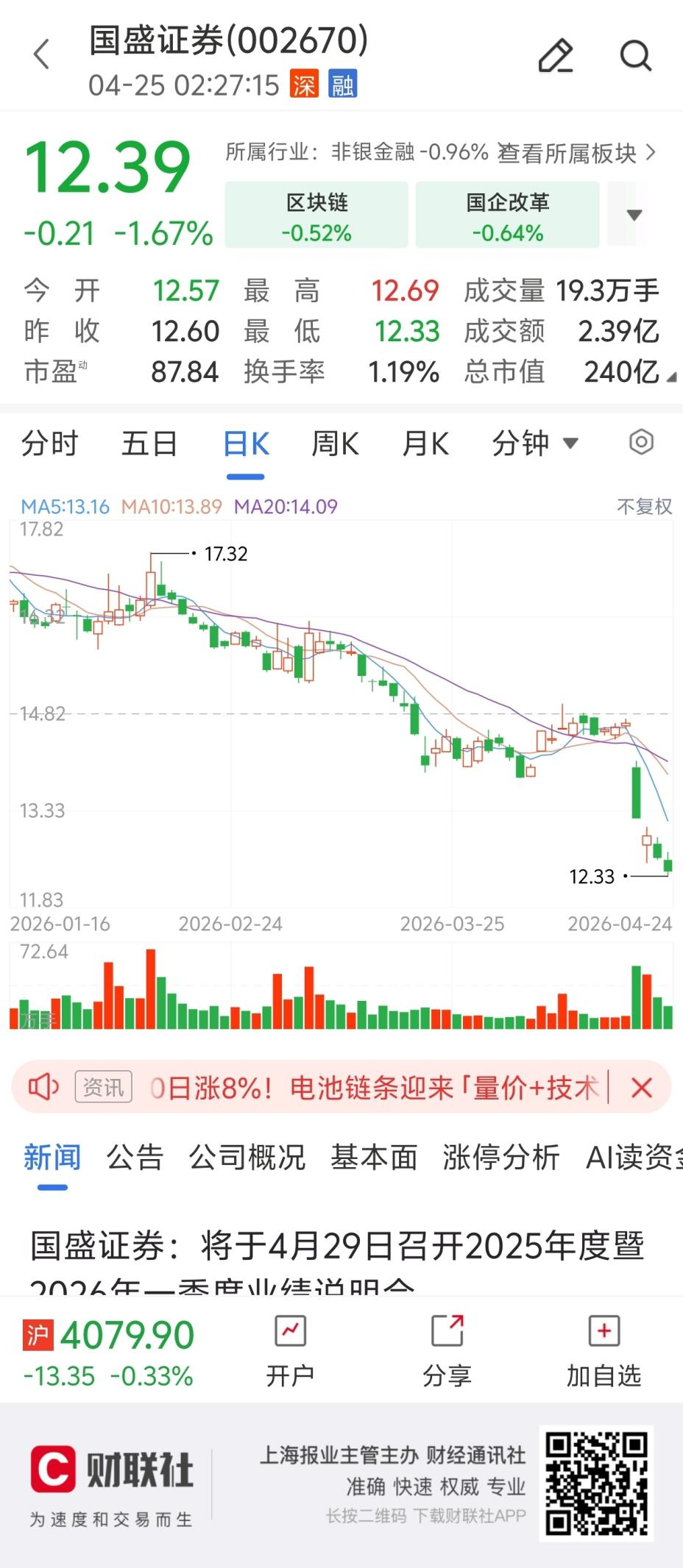 黑天鹅频现:国盛证券一季度归母净利润仅146.87万元,同比骤降97.91%。其子公司持有的趣店(HTT)股票市值大幅波动,导致利润总额锐减。这种将业绩“命门”系于单一个股的赌徒式投资,暴露中小券商风控的脆弱。