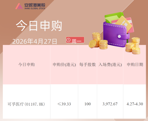 2026年4月27日-4月30日招股,拟全球发售2700万股H股,香港公开发售占10%,国际发售占90%。每股发售价将不超过39.33港元,每手100股,预期H股将于2026年5月6日(星期三)开始在联交所买卖。