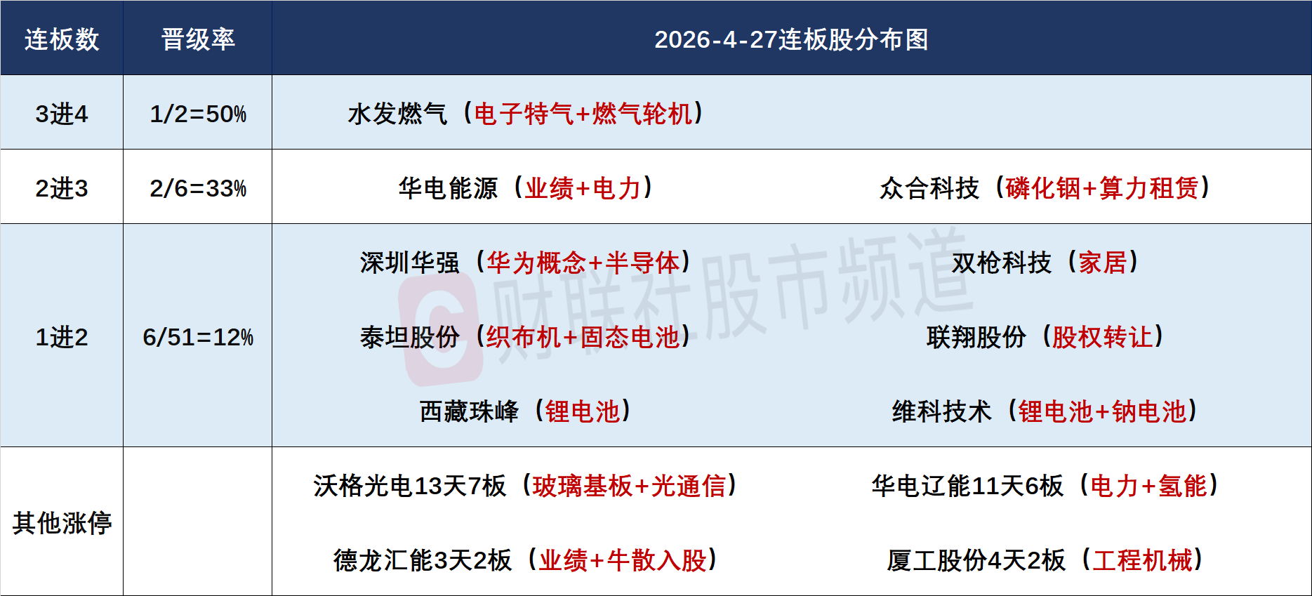①连板晋级率回升至3成以上,高位股表现持续分化,此前5连板人气股金螳螂连续2日触及跌停,绿电人气股华电能源以“地天板”形式晋级3连板。