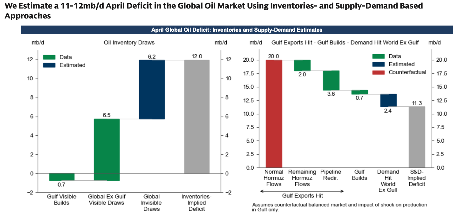 据高盛估算,4月份波斯湾原油产量损失高达1400万桶/日,这一规模在历史上极为罕见。