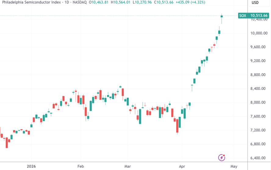财联社4月27日讯(编辑 史正丞)周一盘前,在伊朗战场走向缺乏明确进展、美股财报季处于“稍事休息”的间歇,三大期指盘前走势平平。 不过近来极其强势的半导体板块继续冲高,费城半导体指数将在今晚试图把创纪录连涨扩大到第19个交易日。