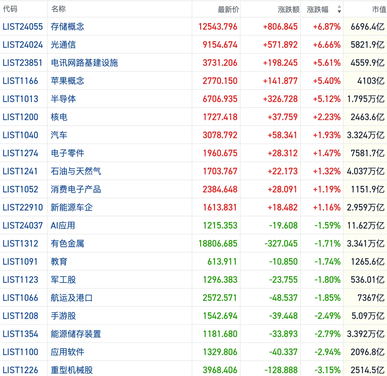 其他方向上,算力硬件延续上攻势头,半导体板块整体走强,算力、光通信、存储等概念跟涨。此外、消费电子、绿电概念活跃,保险、油气股也有热度。